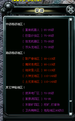 大家可以通过 结合传送员 传送到练级地点、分为低、中、高、特殊练级地区;小美女帮助80级以下玩家恢复状态和增加30分钟的守护魔法;
